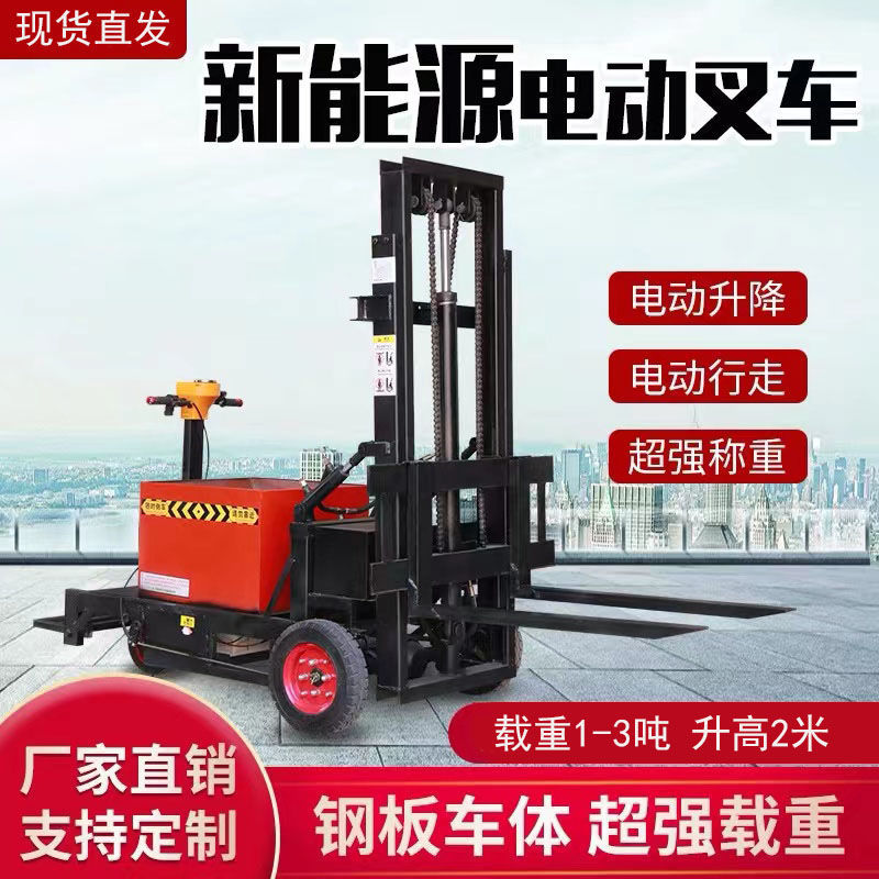 代县小型电动叉车1吨站驾式2吨液压升高铲车全自动仓储堆高车
